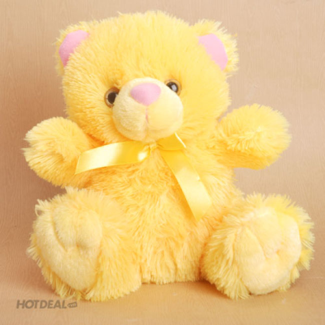 Gấu Bông Thắt Nơ Lông Dài Màu Vàng - Hotdeal