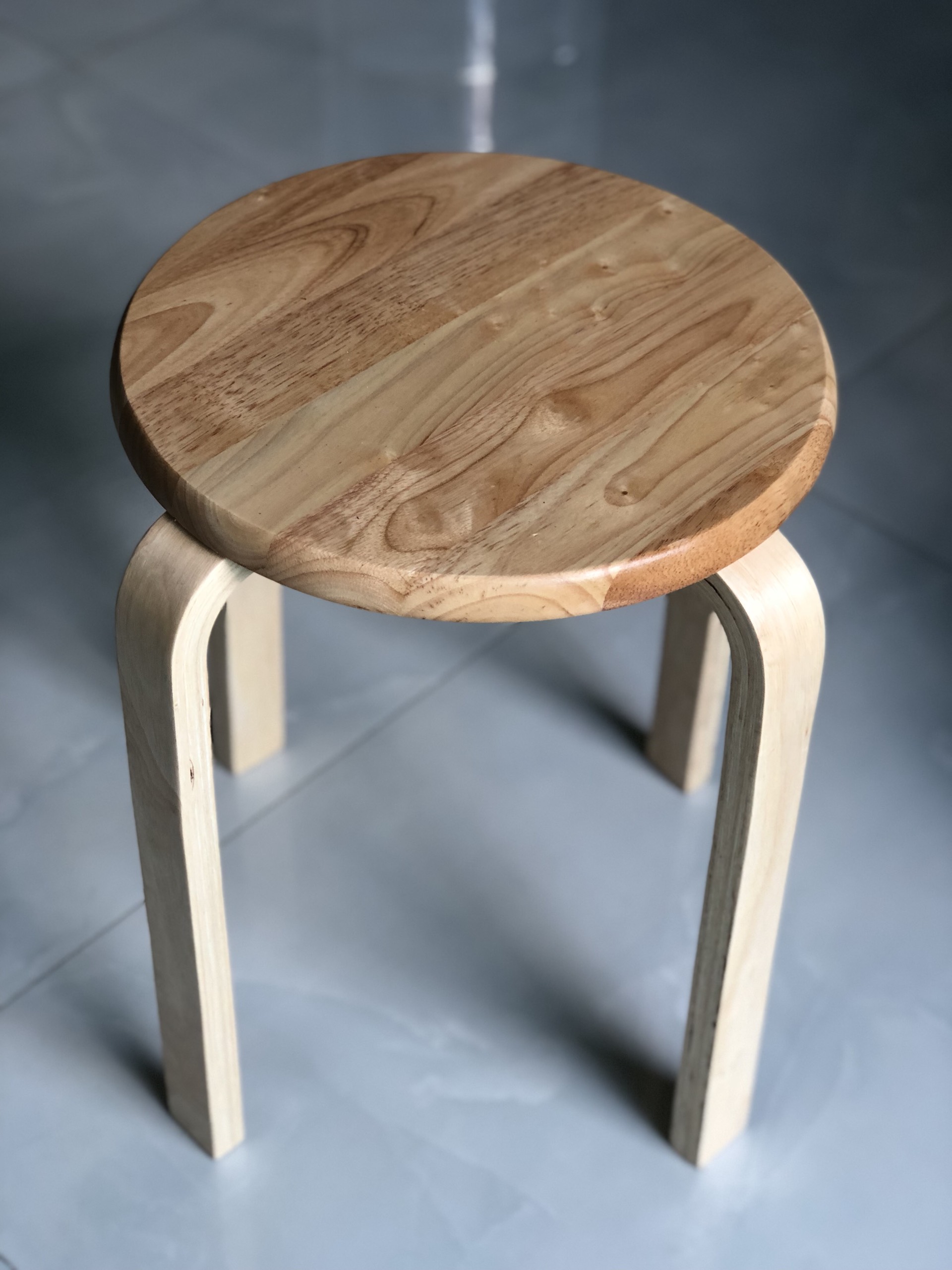 Chất liệu : gỗ cao suCao 44.5 cm, đường kính mặt ngồi 33 cm.HÀNG CHẤT LƯỢNG, TIÊU CHUẨN XUẤT KHẨUXẾP CHỒNG GHẾ LÊN NHAU DỄ DÀNG.