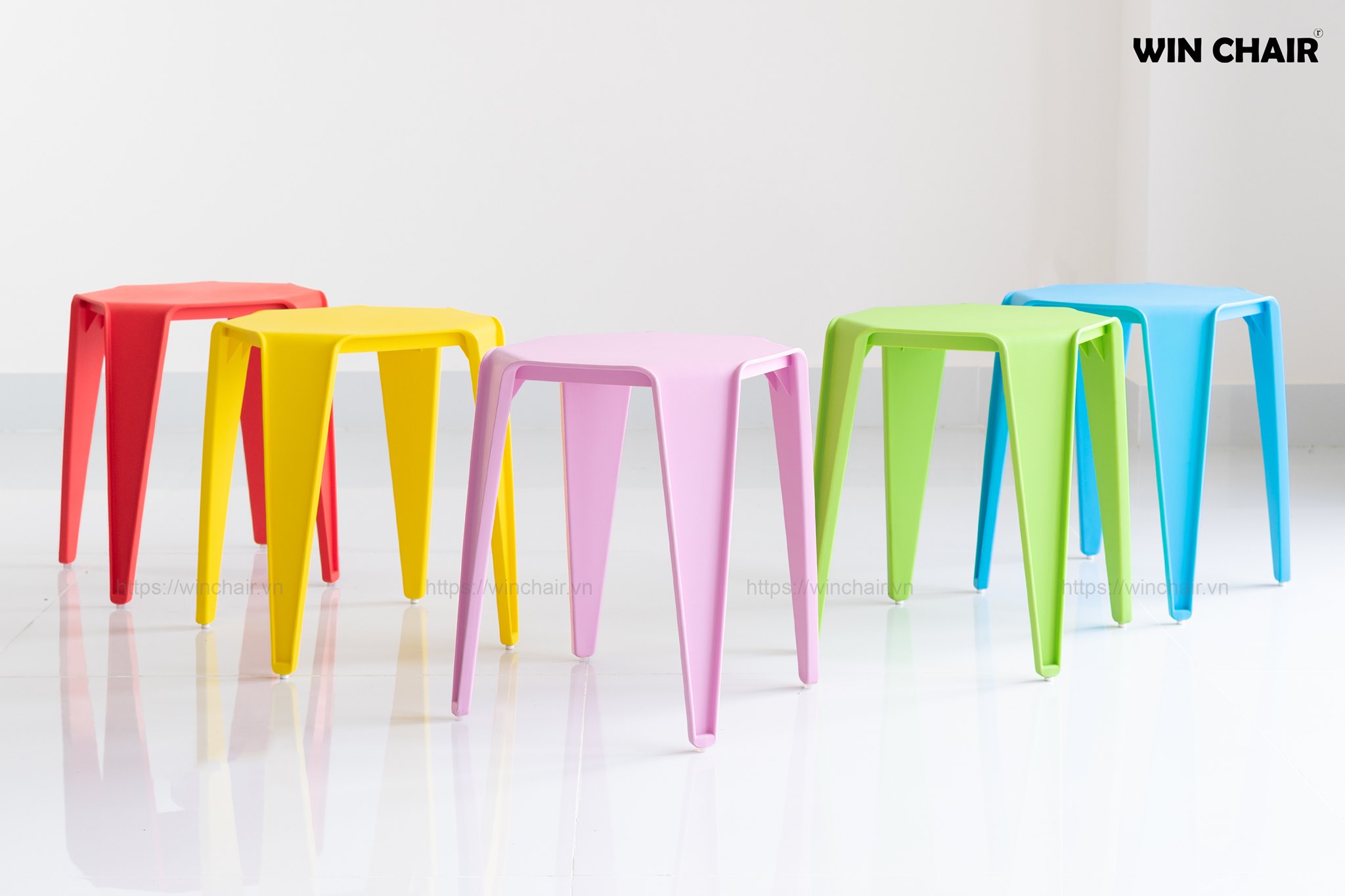 Đây còn là một mẫu ghế đẩu được nhiều trường học lựa chọn làm ghế ăn căn tin cho học sinh, sinh viên trong trường vì nó rất nhẹ, cực kỳ bền, dể dàng di chuyển và dọn dẹp.
