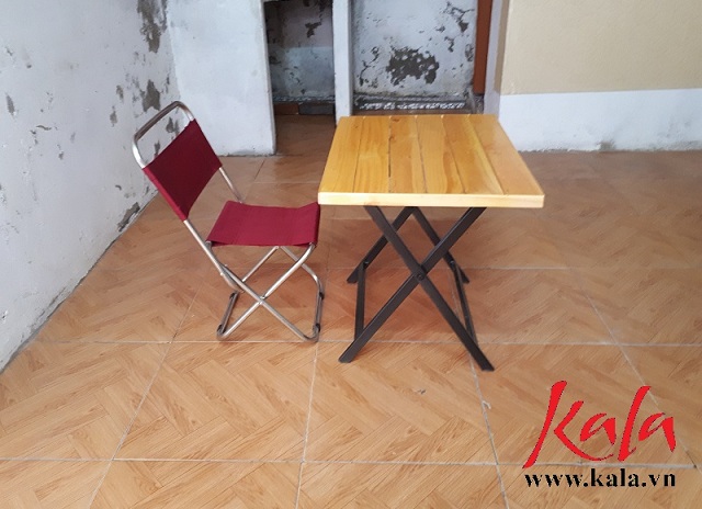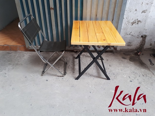 Sự kết hợp giữa ghế dù xếp inox với bàn IKEA rất tinh tế mang nét riêng biệt cuốn hút moi ánh nhìn