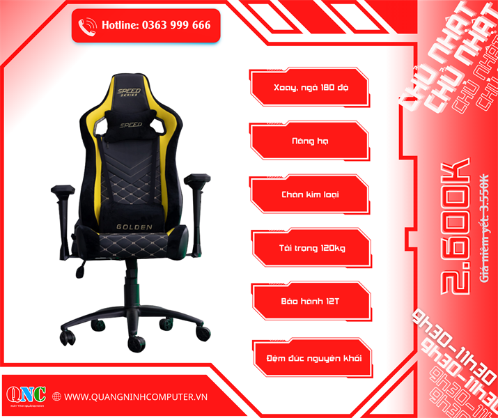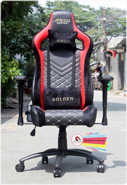 Ghế game Speed Golden - Màu Đỏ (chân xoay, lưng ngả, nâng hạ)