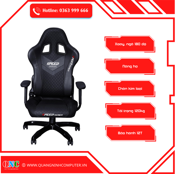 Ghế game SPEED-X01 - Màu Đen (chân xoay, lưng ngả, nâng hạ)