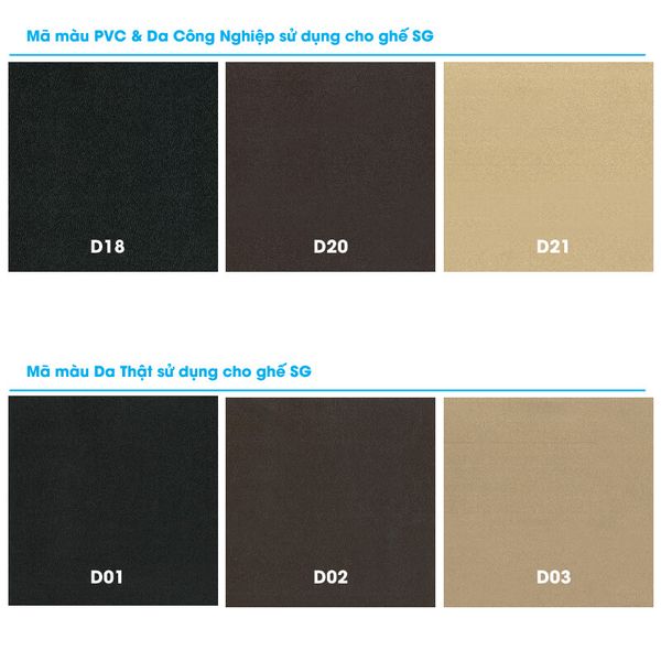Mô tả | Ghế SG903 có 3 chất liệu: Bọc da thật + Da công nghiệp+ PVC+ Chân & tay ghế bằng nhựa đúc sơn nhũ bạc chắc chắn+ Ghế có một cần hơi điều chỉnh độ cao thấp+ Mặt ngồi và tựa lưng có các đường chỉ tạo rãnh thông thoáng+ Lưng liền bằng cốt gỗ tự nhiên ép định hình | |||||