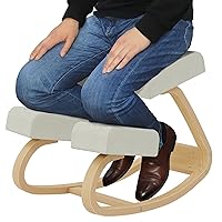 Ergonomic Kneeling Chair, Wooden Posture Chair W/Extra Padding for Back Neck Pain Relief & Improving Posture, Rocking Meditation Stool W/Knee Support for Home Office (Beige) 3,905,894đ