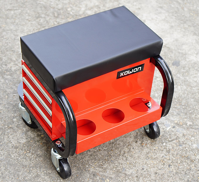 Hộp dụng cụ kiêm ghế di động Kowon là sự kết hợp độc đáo giữa chi tiết ghế ngồi và hộp dụng cụ di động với thiết kế nhiều ngăn kéo, đặc biệt tiện dụng cho những đối tượng thợ sửa chữa cần di chuyển nhiều.