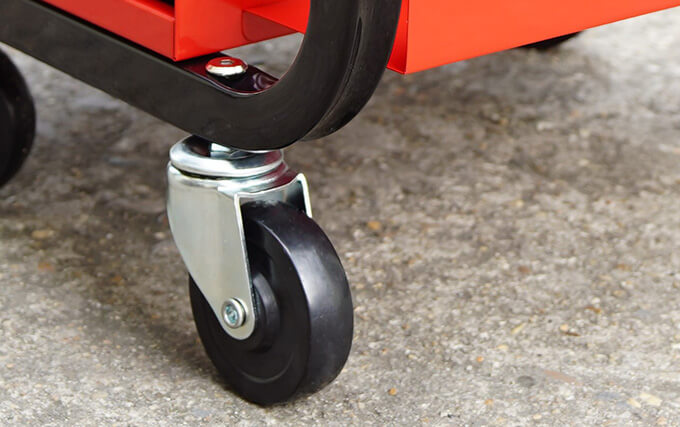 Bánh xe cơ động giúp hộp dụng cụ kiêm ghế di động di chuyển giữa các địa điểm một cách dễ dàng. Trục bánh xe được làm bằng thép kết hợp với với phần bánh xe làm từ nhựa PVC cho độ bền cao và khả năng chịu tải lớn, cho phép người dùng di chuyển hộp dụng cụ kiêm ghế di động trên cả những mặt sàn không bằng phẳng, khấp khểnh, gồ ghề.