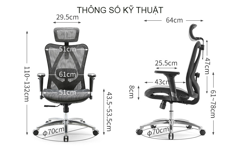 | Màu sắc | Đen/Xám/Trắng | Bánh xe | Xoay 360 độ, Chống ồn |