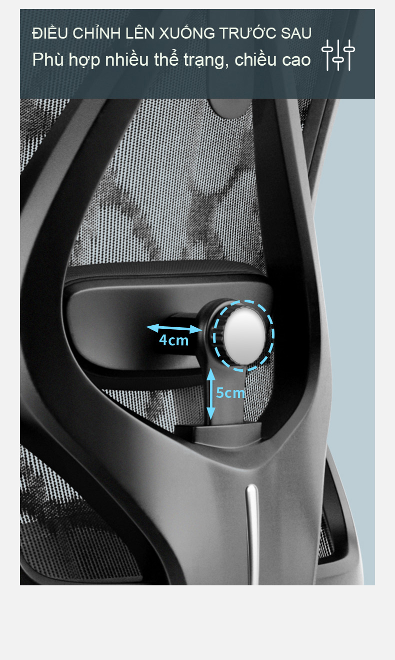 | Lưng ghế | Có đệm đỡ điều chỉnh lên/xuống 5cm, ra/vào 4cm | Tay vịn | 3D |