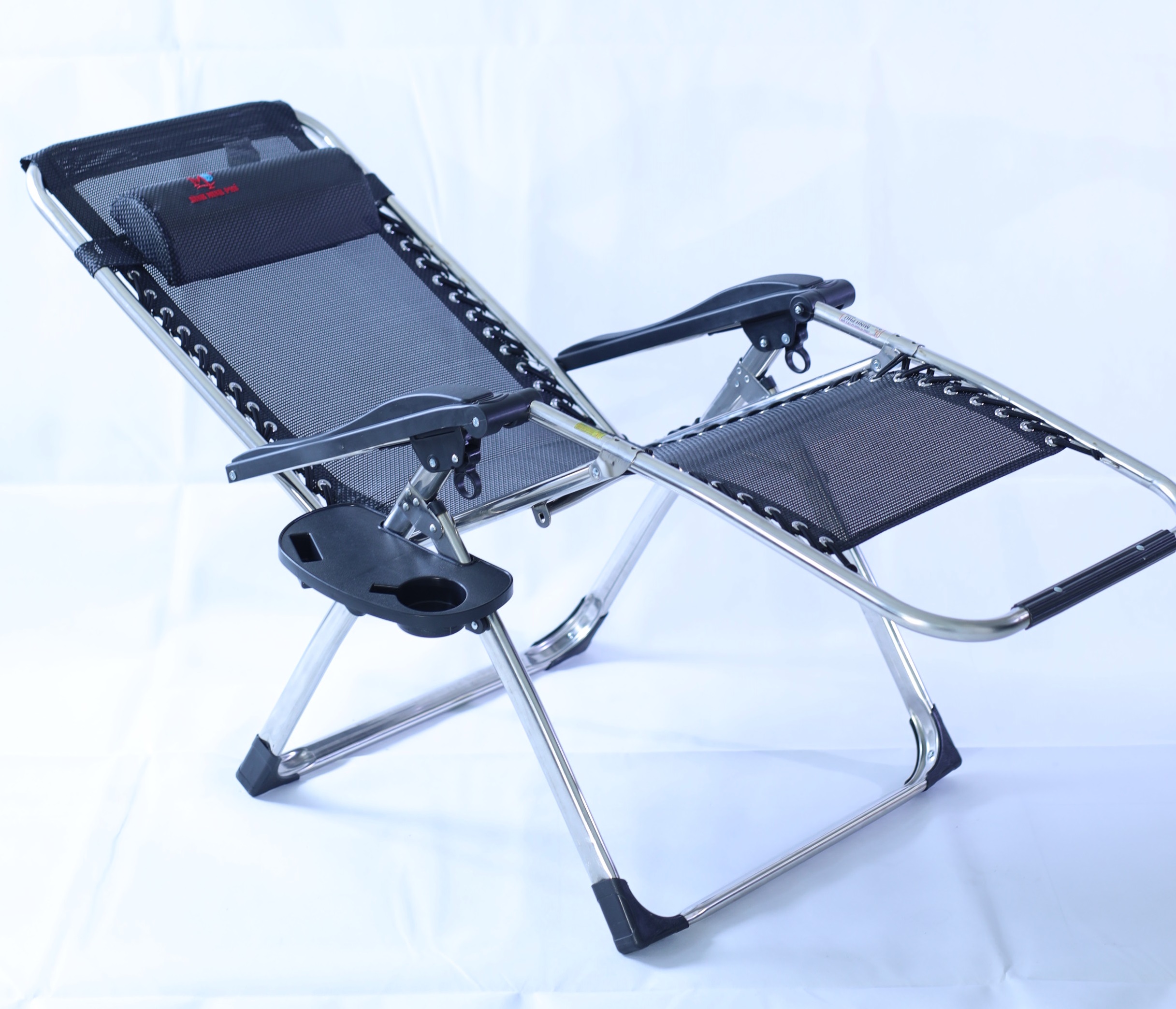 Ghế xếp có trang bị gối đầu và tay vịn, tạo cảm giác thư giãn tối đa cho người dùng.