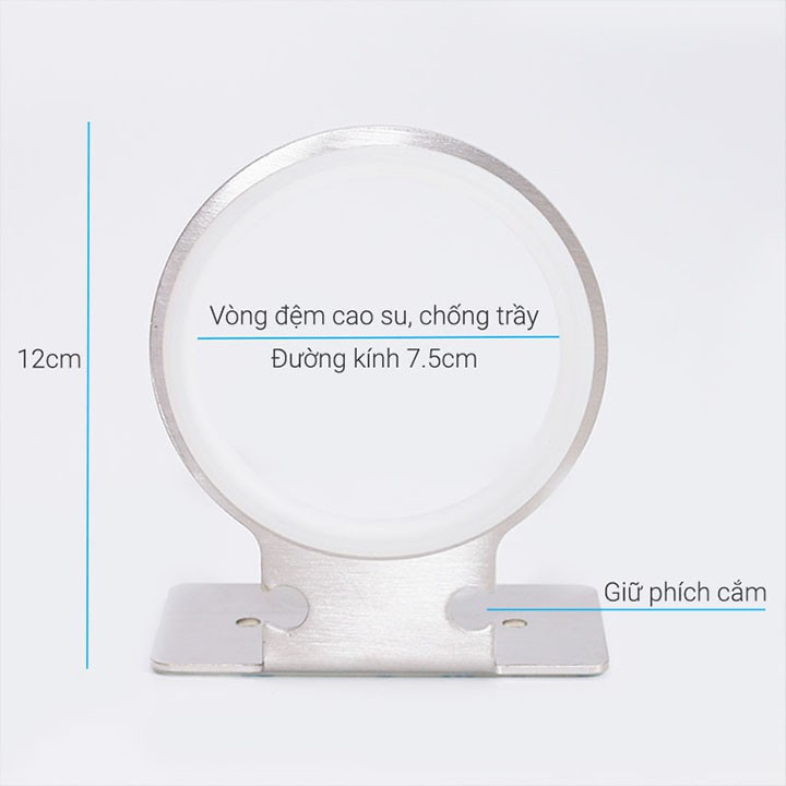 - Chất liệu: Inox 304 xước- Keo dán 3M - Siêu chắc- Kích thước : 10cm x 12cm x 8cm- Vòng trong có lớp cao su mềm chống xước máy xấy tóc- Phù hợp cho nhà tắm, nhà bếp. Nơi có bề mặt gỗ, kính, gạch men - Lưu ý: Hạn chế dán tường sơn, tường vôi