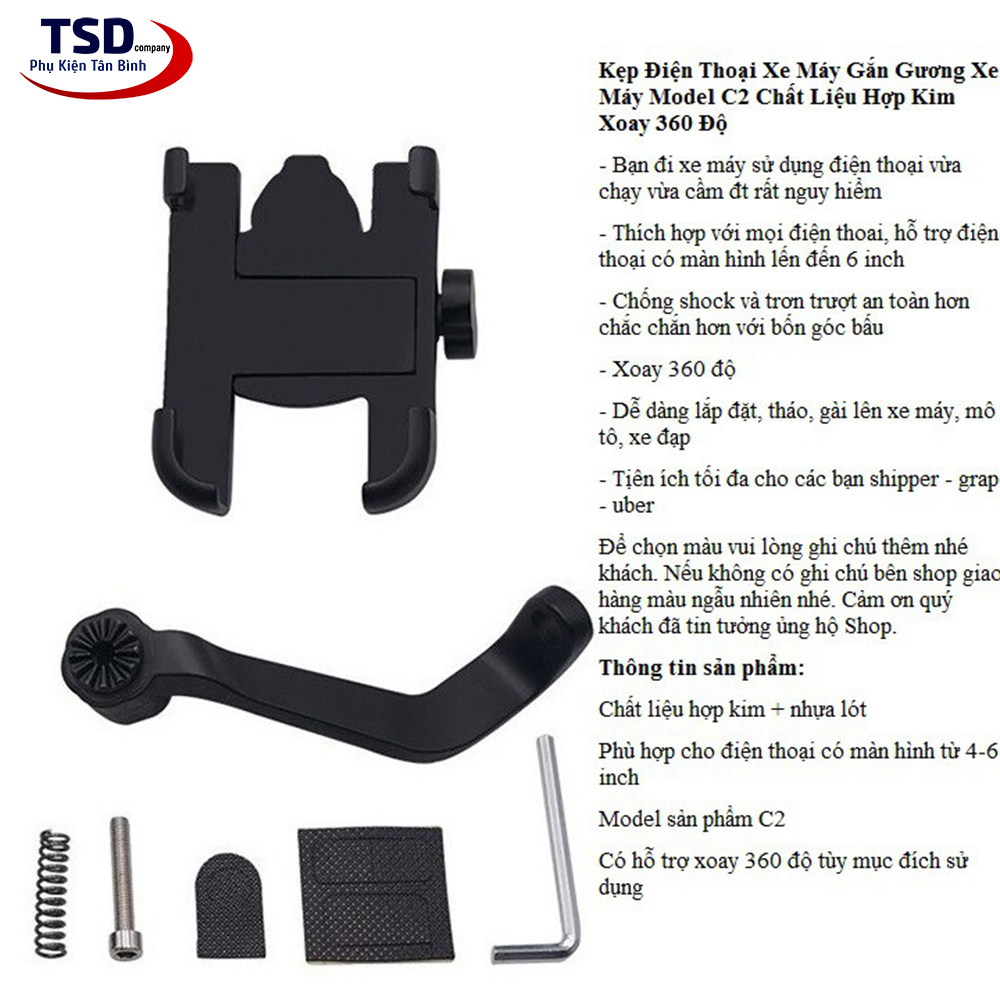 Giá Đỡ Kẹp Điện Thoại C2 Gắn Trên Xe Máy Hợp Kim Nhôm