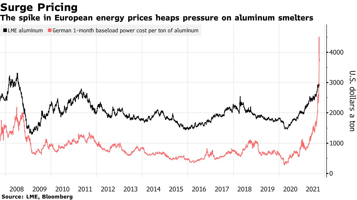 Trung Quốc trong nỗ lực hạn chế sử dụng năng lượng trong công nghiệp sẽ thắt chặt hơn đối với sản xuất nhôm, dẫn đến thiếu hụt nguồn cung. Chi phí năng lượng tăng trên khắp châu Á và châu Âu cũng có nghĩa là nguy cơ bị cắt giảm nguồn cung nhiều hơn.