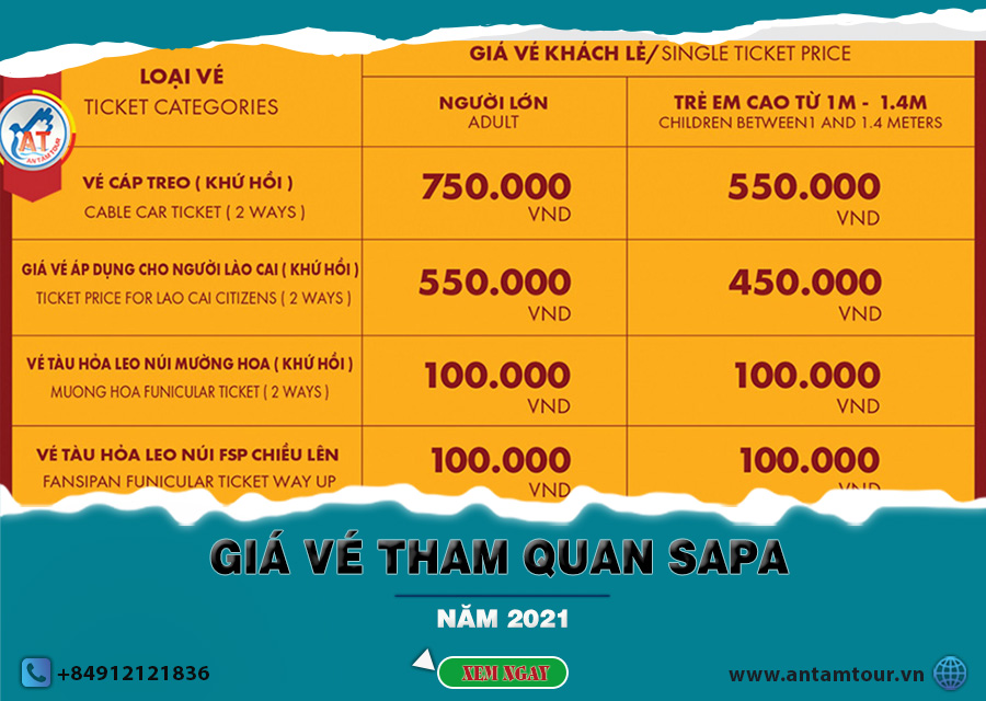 ☎ Trên đây là tất tần tật thông tin về giá vé các điểm tham quan tại Sapa, bao gồm cả những điểm miễn phí vé tham quan. Chúc quý khách có một tour du lịch Sapa thật vui vẻ và ý nghĩa bên gia đình và người thân. Mọi thông tin cần tư vấn về tour Sapa 3 ngày xin vui lòng liên hệ Antamtour.vn