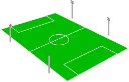 Cách bố trí 4 trụ đèn thường thấy tại các sân bóng đá chuyên dùng để giải trí hoặc đá tập. Thông thường 4 trụ đèn được đặt xung quanh sân bóng. Mỗi trụ đèn được đặt ngang với vạch kẻ 16m50 trong sân. Nếu sân bóng có khán đài thì các trụ đèn được dời ra phía sau khán đài.