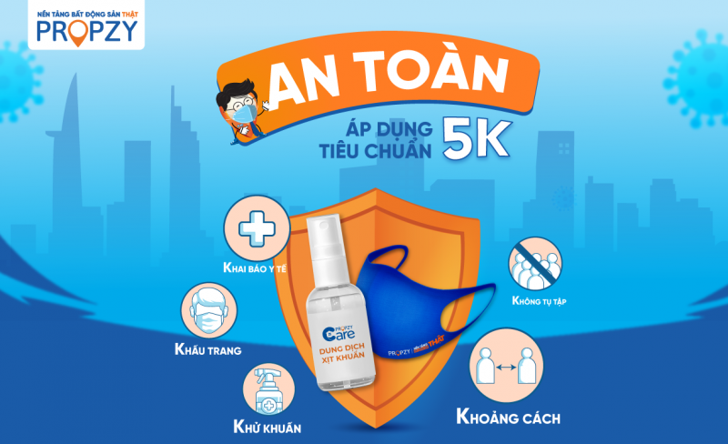 Hãy yên tâm đến với Hệ thống Trung tâm giao dịch của Propzy, không chỉ cung cấp dịch vụ môi giới BĐS 5 sao mà còn áp dụng đầy đủ khuyến cáo 5K.