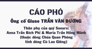 Hội dòng Chúa Quan Phòng tỉnh dòng Cù Lao Giêng | Cáo Phó