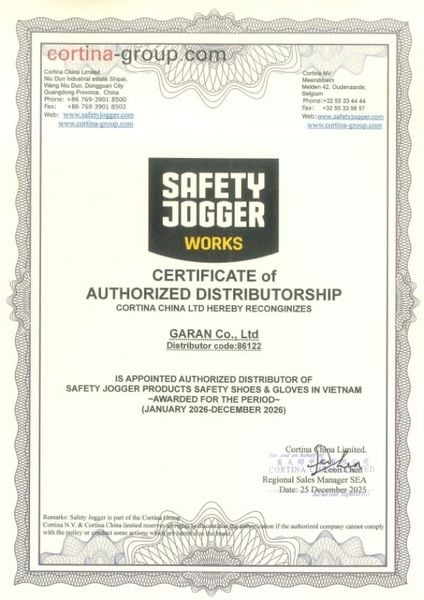 Giấy chứng nhận Bảo Hộ GARAN là đại lý cấp 1 chính thức của Safety Jogger năm 2026