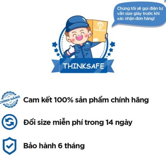 Giày bảo hộ lao động NTT được bảo hành chính hãng tại ThinkSafe trong thời gian 6 tháng đối với các lỗi do nhà sản xuất như: Bung keo, đứt chỉ, bục kế... Bên cạnh đó, chúng tôi có chính sách đổi size linh hoạt lên tới 15 ngày tại văn phòng ThinkSafe. Trường hợp khách ở xa, chúng tôi luôn hỗ trợ phí vận chuyển 1 chiều.