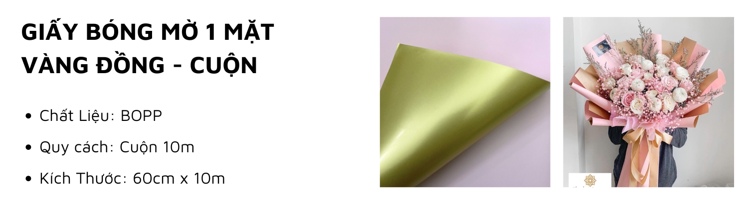 Giấy Bóng Mờ 1 Mặt Vàng Đồng - Cuộn-GSO Thương hiệu: Florist Space | Mã sản phẩm:SNW022_116 Mua nhiều sẽ có giá tốt hơn. BẤM VÀO ĐÂY ĐỂ XEM CHI TIẾT