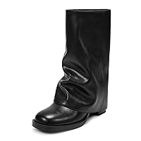 -6% ISNOM Womens Black Boots - Mid Calf Fold Over Chunky High Heel Boots for Women With Side Zipper PU Leather Womens Shark Boot Calf High Square Toe Slouchy Boot for Women 1,118,941đ 1,163,373đ Trang - 1