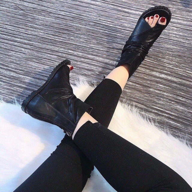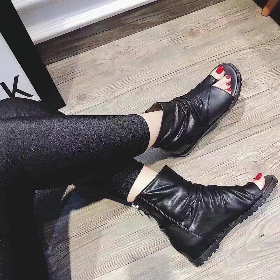 Giày Boot Nữ Xỏ Ngón Độn Đế C27 - Đen được may từ chất liệu da pu bền đẹp, mang lại cho đôi chân bạn sự mềm mại thoải mái khi sử dụng.