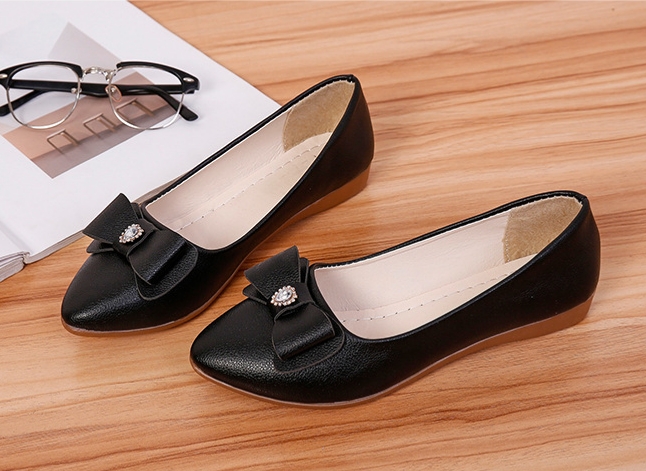 Giày Búp Bê Da Bò Đế Mềm Gắn Nơ - ĐIỆN LẠNH LỰC LÚC LẮC