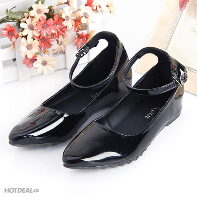 Giày Búp Bê Thời Trang Da Bóng Mũi Nhọn Có Quai Đen - Hotdeal
