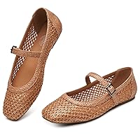 Trary Mary Jane Shoes Women Woven Flats for Women Dressy Ballet Flats Squared Toe Mary Jane Flats Shoes (697) . Mỹ 1,622,473đ
