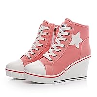 ALLINNINE Women's Sneaker Shoes High Heel Fashionable Canvas Shoes High Tube Lace Up Wedge Edge Zipper Slope Angle Shoes Size 4-11 1,726,491đ