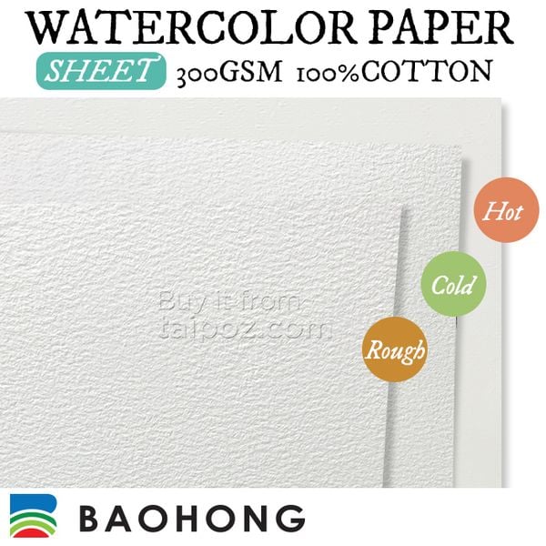 Giấy Màu Nước Baohong 300gsm 100% Cotton, Tờ Lẻ - Taipoz