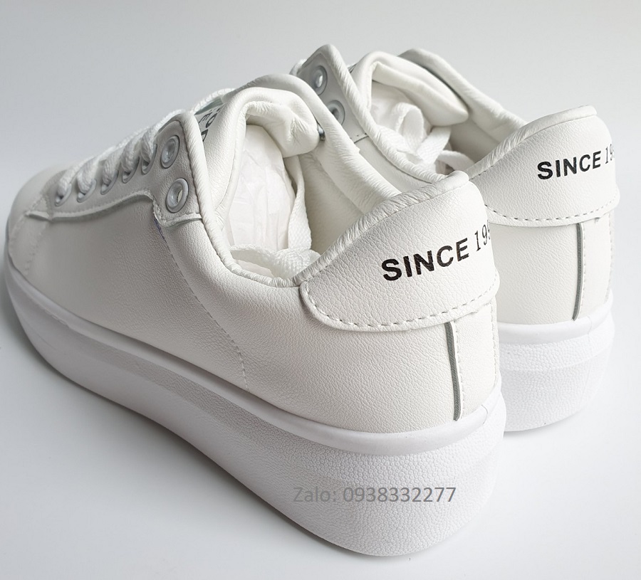 - Thân giày màu trắng với dòng chữ ở phần gót tạo điểm nhấn làm cho đôi giày nổi bất hơn, Toàn bộ thân giày được làm bằng chất liệu da PU cao cấp mềm mịn và độ bền cao, đường may chắc chắn và tỉ mỉ.