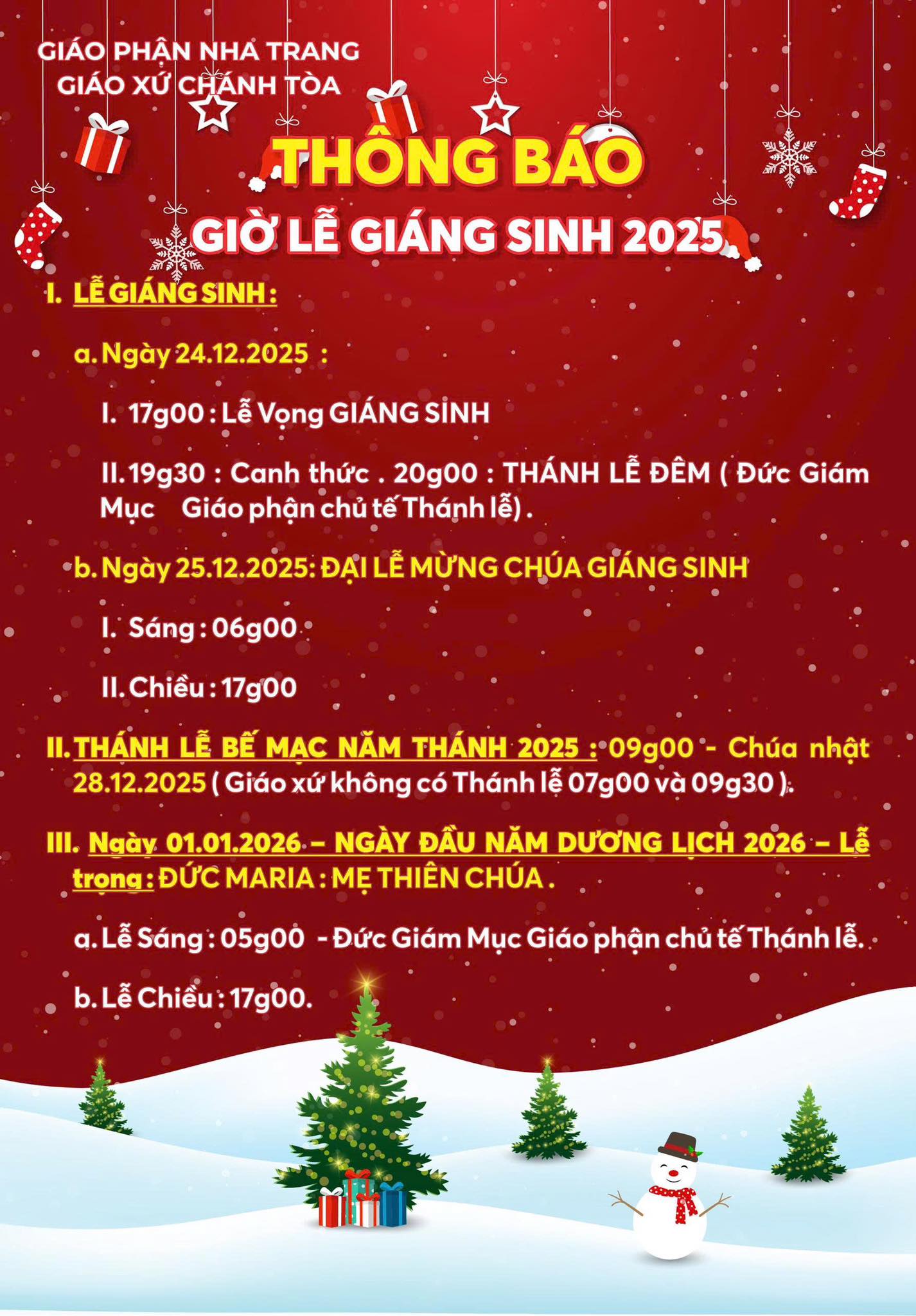 - Lễ Giáng Sinh (25/12) 06:00, 17:00