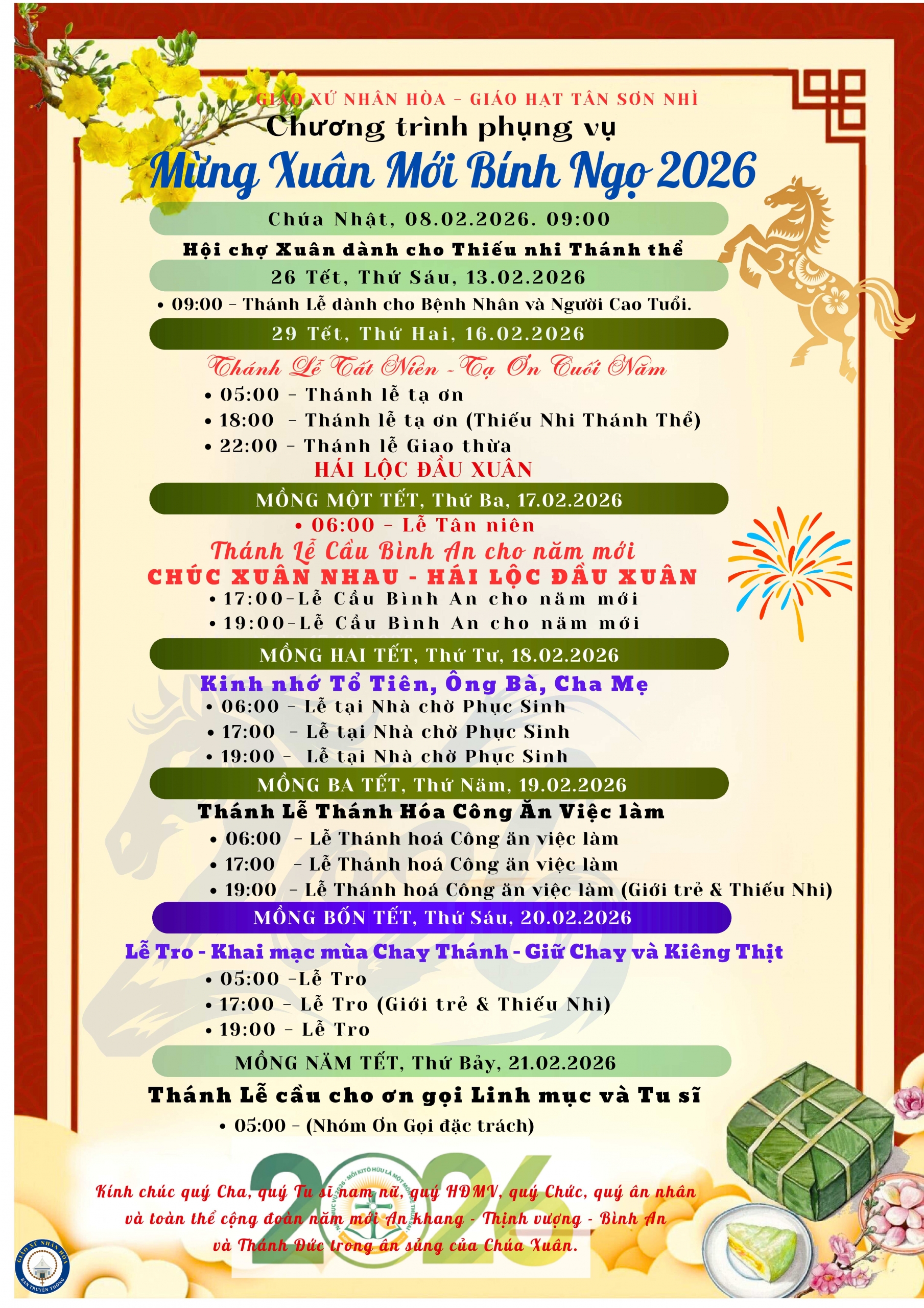 Lịch Giờ Lễ Nhà Thờ Giáo Xứ Nhân Hòa Năm 2022
