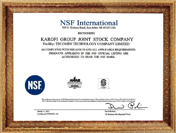 Máy lọc nước RO Karofi đạt chứng nhận NSF/ANSI 58 – Tiêu chuẩn an toàn của Mỹ