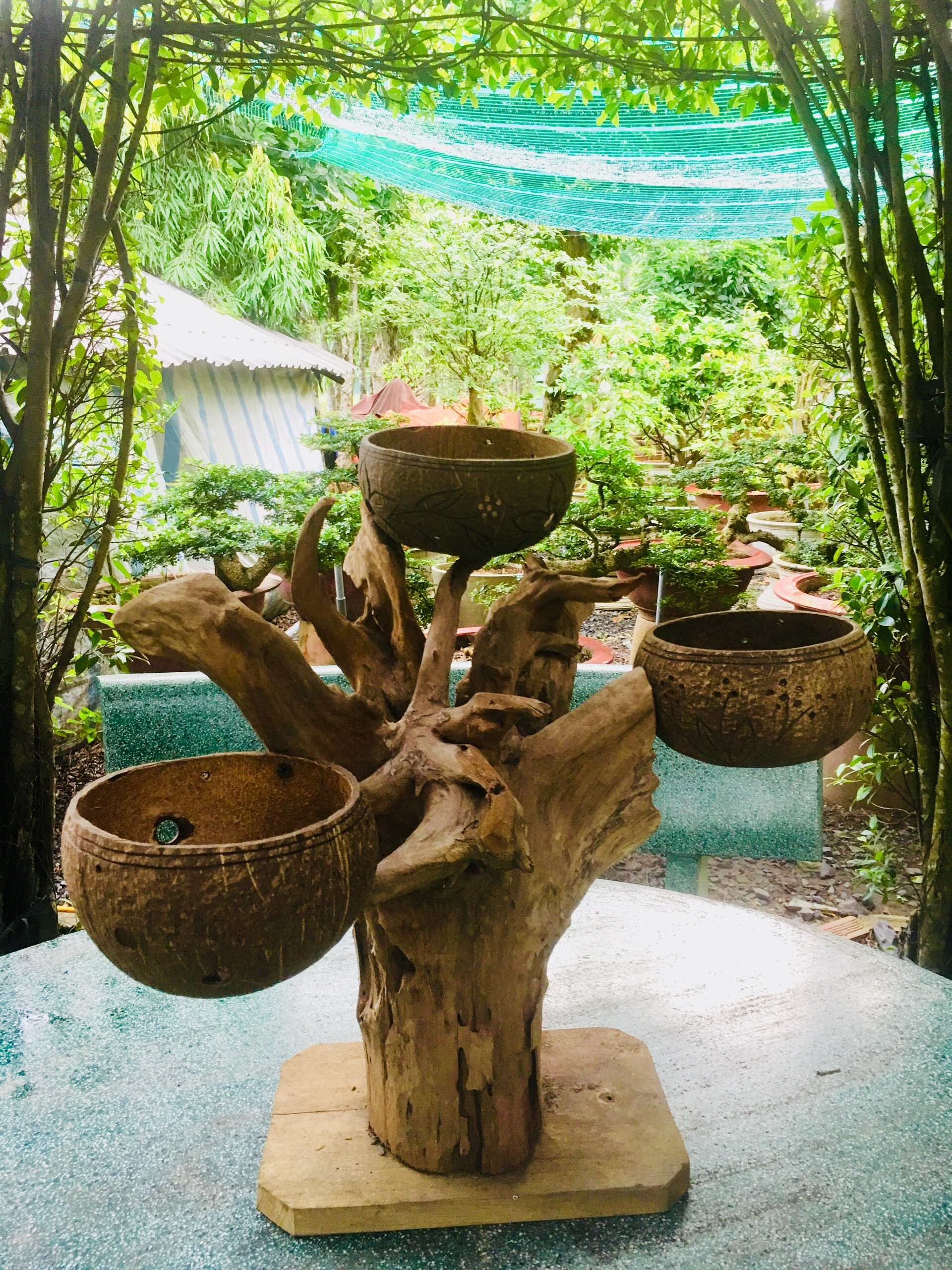 sản phẩm gồm gốc lũa sầm đỏ và 3 gáo dừasp bền đẹp theo thời giandùng trồng lan, sen đá trang trí sân vườn, trong nhà đều rất đẹp