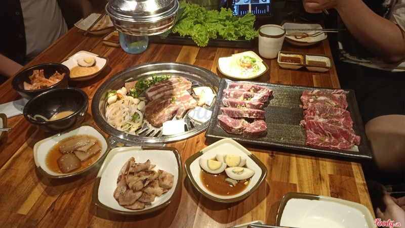 - Khá tốt Viết bình luận Thông tin & Bản đồ Báo lỗi vị trí Thời gian hoạt động Đang mở cửa 10:30 - 22:00 Thích hợp Buổi trưa , Buổi xế , Buổi tối Giờ nhận khách cuối 21:30 Thời gian chuẩn bị Khoảng 5 - 10 phút Nghỉ lễ Không nghỉ lễ Thể loại Nhà hàng Sức chứa 200 người lớn Phong cách ẩm thực Món Á , Món Hàn Phù hợp với Ăn gia đình , Hẹn hò , Họp nhóm , BBQ - Món Nướng Phục vụ các món Thịt Gà , Thịt Bò , Thịt Heo , Hải sản Giấy phép/chứng nhận Xem