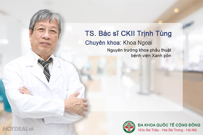 Ts.Bác sĩ Trịnh Tùng – Nguyên trưởng khoa phẫu thuật bệnh viện Xanh-pôn tiến sỹ - bác sỹ Ngoại tiêu hóa và các bệnh về hậu môn trực tràng như bệnh trĩ nội, bệnh trĩ ngoại, rò hậu môn, Polyp hậu môn...