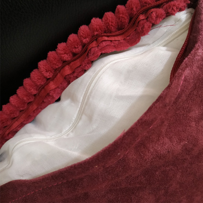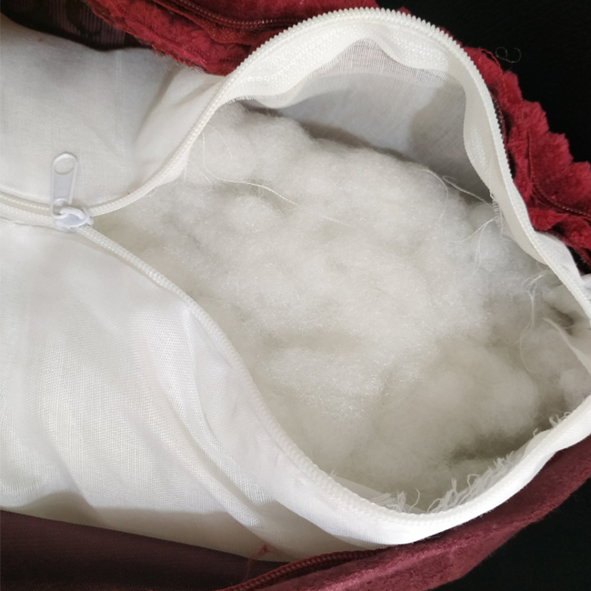 Ruột gối cũng được may khóa kéo để vệ sinh khi cần. Ruột Bông gòn 100% Polyester tạo cảm giác êm ái khi sử dụng