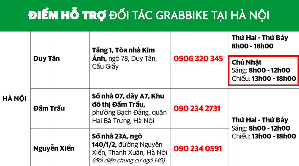 Thứ Sáu Tháng Tám 17th, 2018 [GRABBIKE] CẬP NHẬT THỜI GIAN LÀM VIỆC TẠI VP GRAB VÀ CÁC ĐIỂM HỖ TRỢ, ÁP DỤNG TỪ 19/08/2018