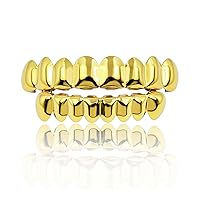 YOSZO 18K Gold Plated Gold Finish 8 Top Teeth 8 Bottom Tooth Hip Hop Teeth Grillz + 2 Molding Bars for Men and Women 517,030đ