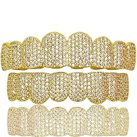 PINK TOWN Gold Hip Hop Teeth Grillz for Men Women Punk Style Rapper Teeth Grillz 8 Teeth Caps Top Bottom Set Sparkling Cubic Zirconia Teeth Grilz Christmas Birthday Party Costume Jewelry 447,388đ