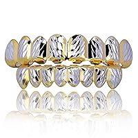 Txdvbls Grillz - Gold & Silver 6/8 Teeth Top & Bottom Grillz Set for Men and Women, 14K Gold Plated Teeth Caps for Halloween Costume Accessories 482,615đ