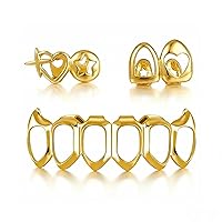 ZZQPSD Gold Grillz Set Open Face Hip Hop Teeth Jewelry Gold Plated Dental Caps for Top Bottom Removable Grills for Men Women 479,712đ