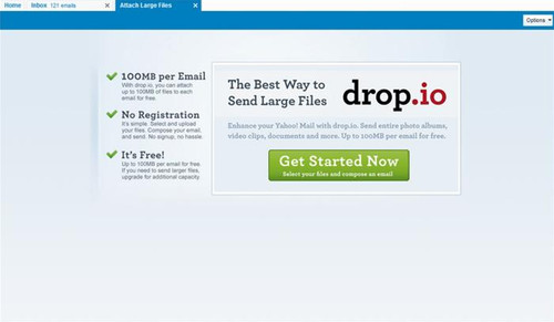 Bạn cũng đừng hoảng hốt khi nghĩ rằng Yahoo Mail! sẽ mất một khoảng thời gian khá lâu mới upload được tệp tin 100MB. Thực ra, công việc đó sẽ do Drop.io tiến hành, thay vì gửi file thực sự qua mạng, nó chỉ gửi đường link để cho bạn hoặc bạn của bạn download file từ đó xuống mà thôi.