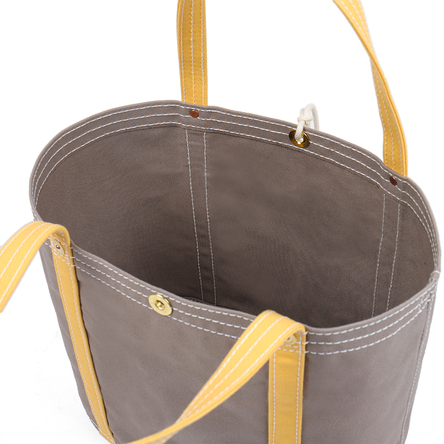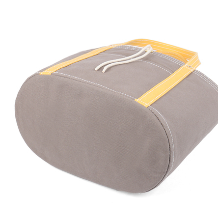 Canvas: cotton canvas This bag is a renewal of our milkman’s bag (No.268) made to carry 20 bottles of milk. A4 size documents can be carried either vertically or horizontally. As the gusset has depth, it can hold many items comfortably. There is a zippered inner pocket that can hold valuables such as keys, etc. The eyelets (perforated metal fittings) enable the bag mouth to be closed with a sturdy cotton string. It is the same type as the Ichizawa Hanpu No.168 [Medium].