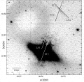 After reduction, the multifit format images were combined into a single-fit image within IRAF following the guidelines set forth in Valdes (1997). An internal reflection persists at the few percent level after flat-fielding and median-combining; this is a result of the corrective optics currently employed at the 4 m telescope in combination with the use of narrowband filters. The amount of reflection depends critically on the presence of bright objects near the imaging field and can vary between dithered images. The reflection is less noticeable in regions with high background emission.
