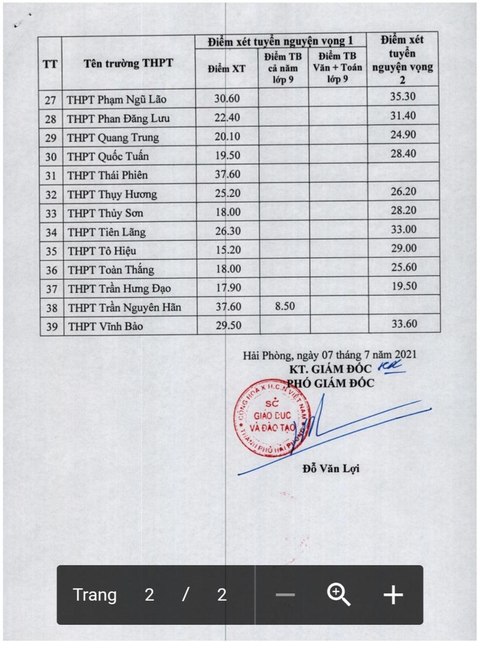 Hải Phòng: Điểm Chuẩn Vào Lớp 10 Trường Trung Học Phổ Thông ...
