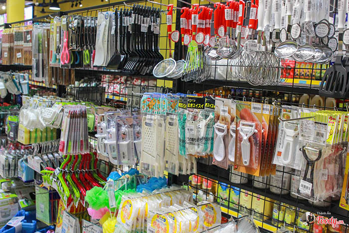 Khu đồ gia dụng cũng không kém phần hấp dẫn, những bộ nồi, máy xay, nồi cơm điện của Đức, chén, bát, xoong, chảo, hộp đựng thức ăn của Nhật, bao nhiêu các vật dụng thiết yếu cho nhà bếp, toàn là hàng hiệu không chê vào đâu được, nhìn chỉ muốn ôm trọn chúng về bổ sung vào bộ sưu tập ở nhà thôi!