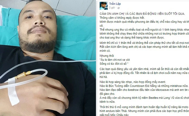 Ca sĩ Trần Lập: Sau bốn tháng kiên cường chiến đấu với căn bệnh ung thư trực tràng, Trần Lập, thủ lĩnh ban nhạc Bức Tường, đã trút hơi thở cuối cùng vào ngày 17-3-2016. Trước đó, ngay sau khi phát hiện bị bệnh, anh đã được phẫu thuật cắt bỏ khối u đại trực tràng. Sau đó xạ trị tại BV K Tân Triều (Hà Nội) nhưng không qua khỏi.