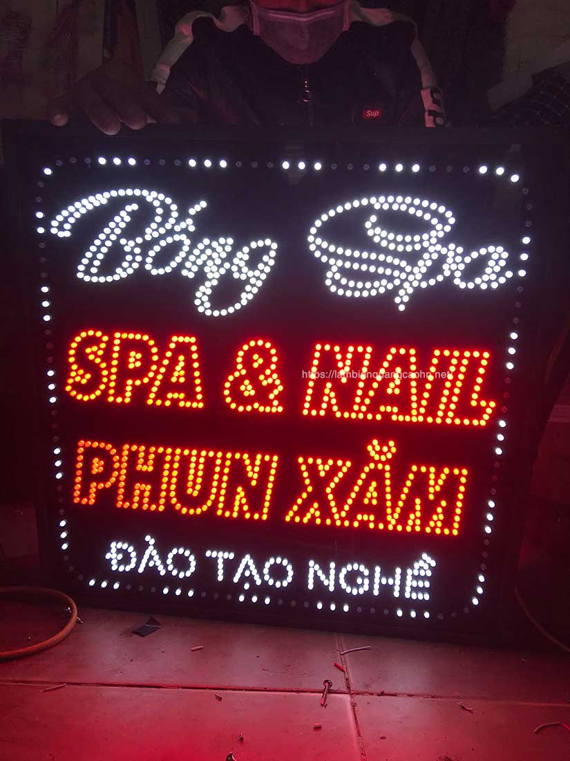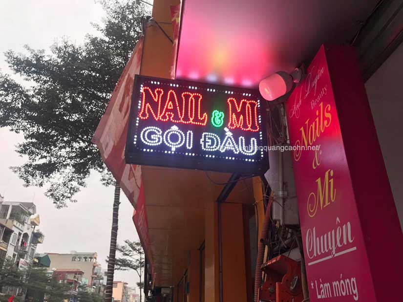 Bài viết ngày hôm nay sẽ đi sâu về bảng quảng cáo LED dạng bảng vẫy, kiểu biển mà chúng tôi đã áp dụng ít nhất cho khoảng chục tiệm nail và mi tại Hà Nội.
